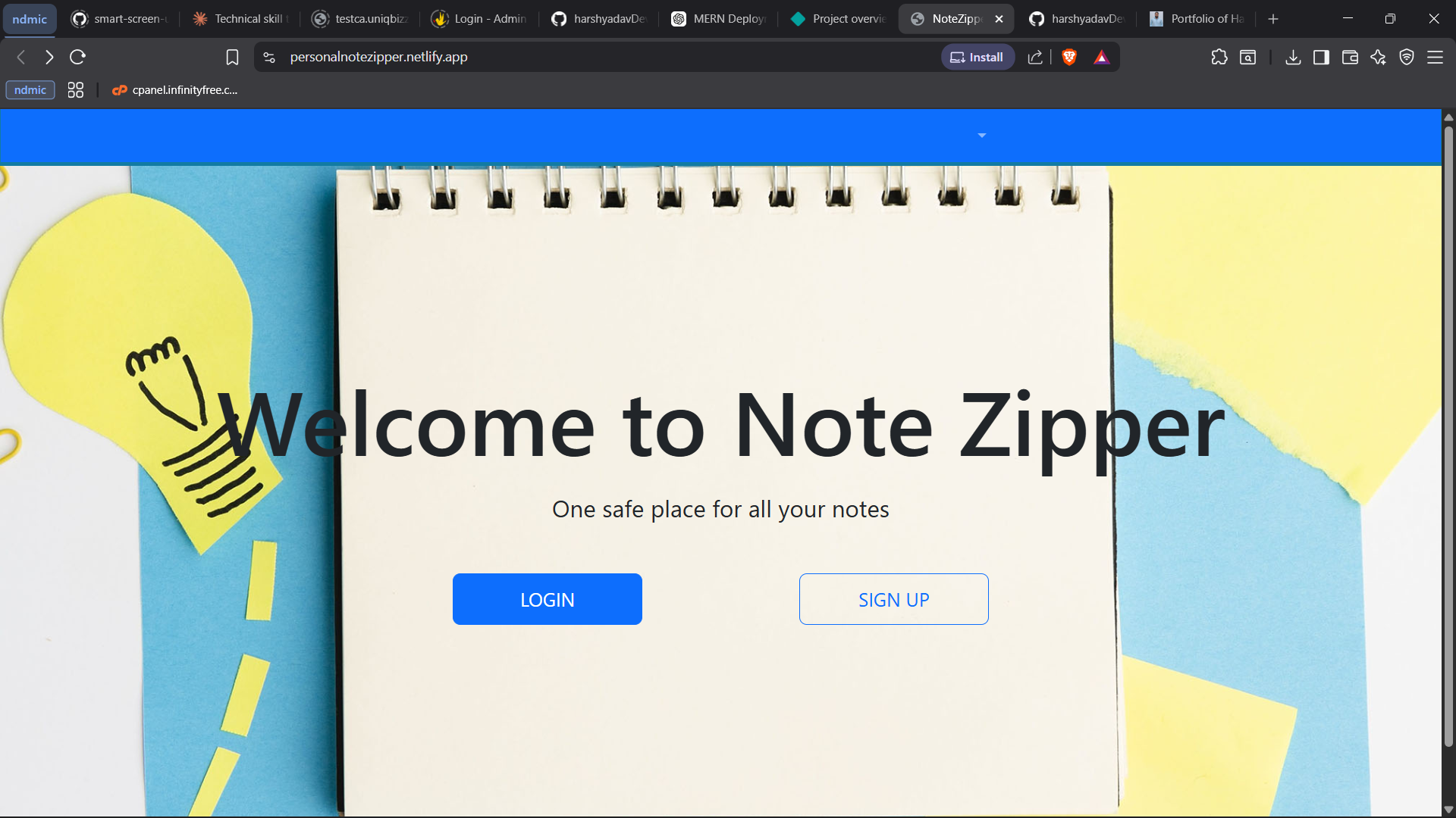 constproject={name:'Notezipper',tools: ['React', 'Node', 'Rapid API', 'MongoDb', 'Bootstrap'],myRole:Developer,Description: NoteZipper is a task management web application that allows users to register or log in and create notes to track their daily tasks. Users can add, edit, and delete notes as needed, ensuring an organized workflow. The platform includes a filtering feature that enables users to sort notes based on their creation date, making it easy to find relevant tasks. A secure authentication system ensures data privacy, while a responsive interface enhances usability. NoteZipper aims to simplify task tracking, providing a seamless and efficient note-taking experience to help users stay productive and organized in their daily routines.,};
