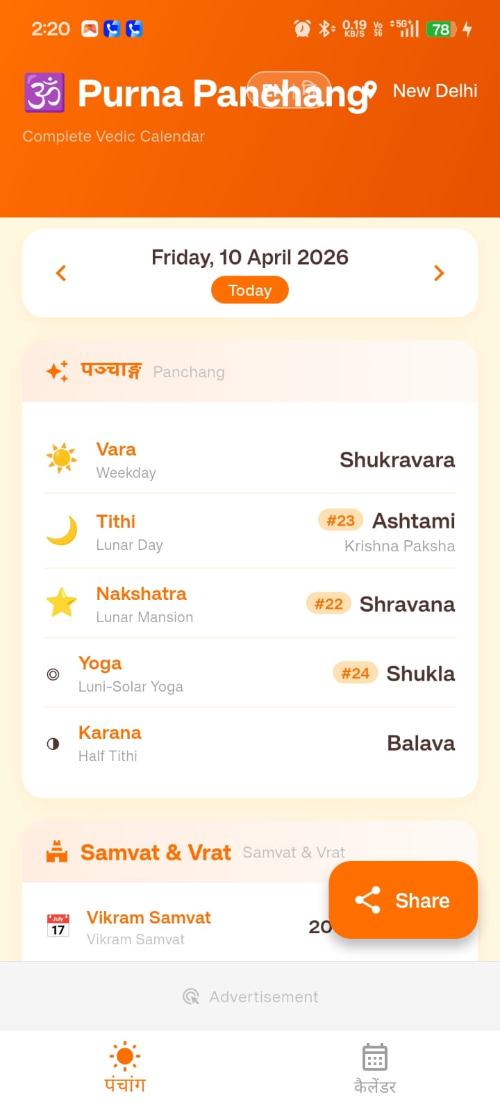 constproject={name:'Purna Panchang',tools: ['Flutter'],myRole:Android Developer,Description: A full-featured, offline-first Hindu Panchang app for Android. Computes all five Panchang elements astronomically on-device — no API, no internet dependency, works anywhere. With Language toggle,Demo:,};